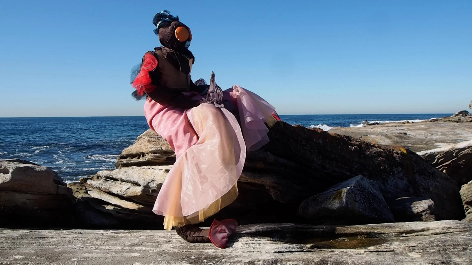 Four fabric life-sized anthropomorphic creatures are animated on location at South Maroubra in a sculpture / video intersectional work. Footage without the creatures was shot over three years commencing in 2019, at different times of the day, year and weather conditions, ensuring no evidence of human presence was recorded. Footage with the creatures was shot during 2021. The sculptural creatures have also been installed for photo shoots in other locations.
